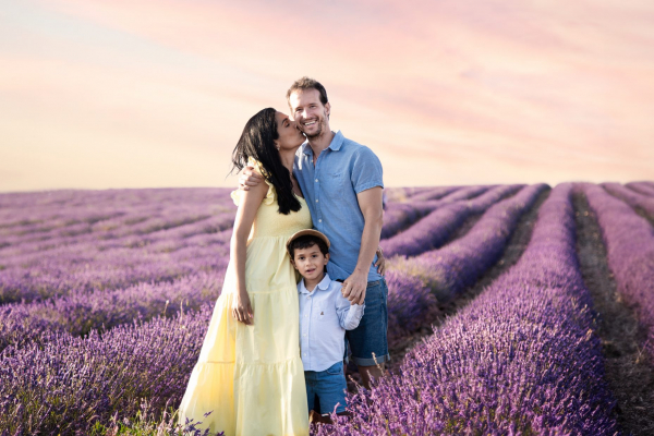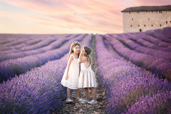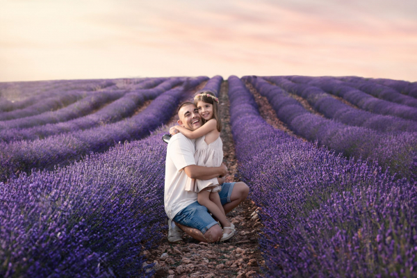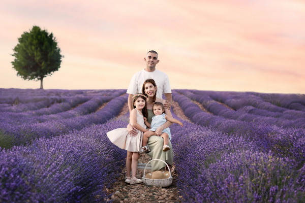 La luz suave del atardecer entre la lavanda crea el escenario perfecto para capturar miradas auténticas, la ternura de tus hijos solos o la unión familiar. Son imágenes que no solo decoran paredes, sino que transmiten amor, alegría y ese lazo que existe entre ustedes.